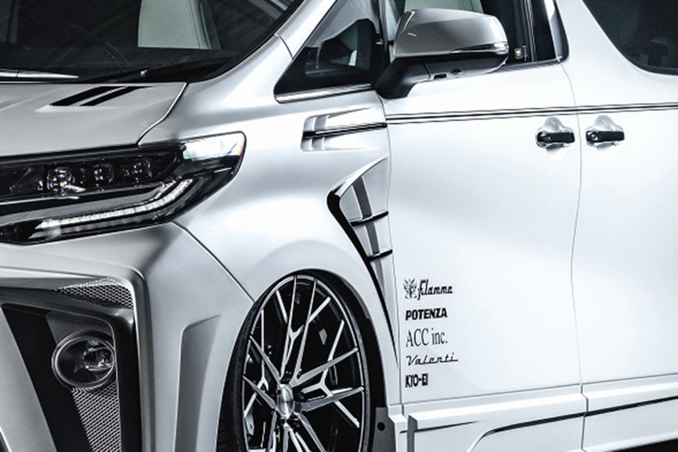 敢えて30系ヴェルファイア用ボディキットに近い自己主張を持たせ、重厚感があり、それでいて派手過ぎずエレガントであることを目標に開発したこのボディキット。ヴェルファイアと兄弟車ながらアルファードにはまた別の世界観があることを強調するものとして完成しました。