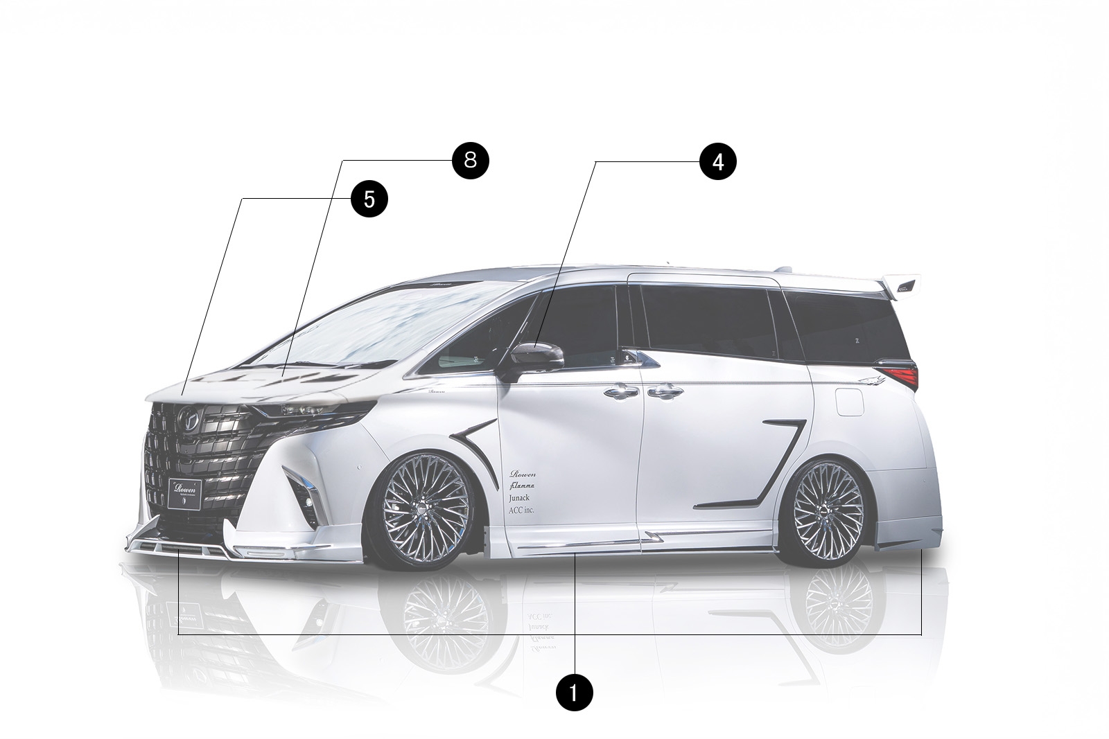 デザインはLEDラインイルミやクロームアレンジを盛り込み、重厚感とラグジュアリー感を演出。3Dデジタルモデリングによる高精度設計で、40系アルファードの魅力をさらに引き立てます。